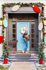 Truly magical christmas front door and porch decor with ribbons wreaths and christmas trees 14.
